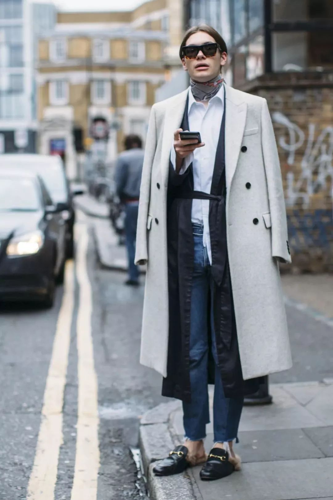 搭配九分牛仔,正好匹配精致西装大衣和叠穿风衣的时髦效果。点缀优雅颈饰和白衬衫,吸睛又夺目。