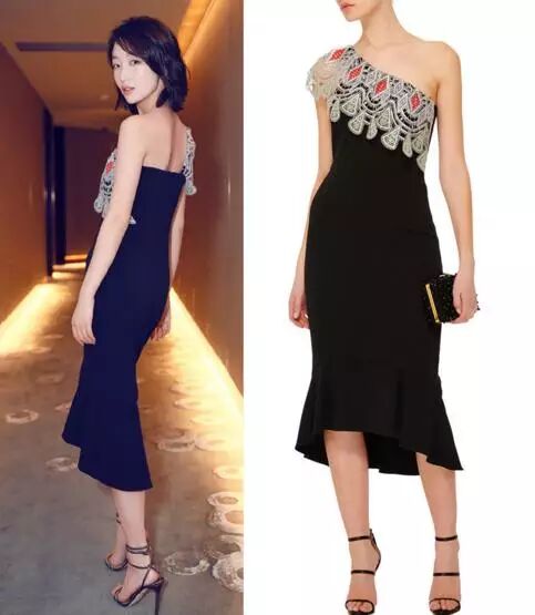 越来越会穿的周冬雨此次选择了黑色单肩连衣裙,裙子雅致又充满女人味,让一贯走小清新路线的周冬雨也变身小女人。绑带鞋也为性感加分。