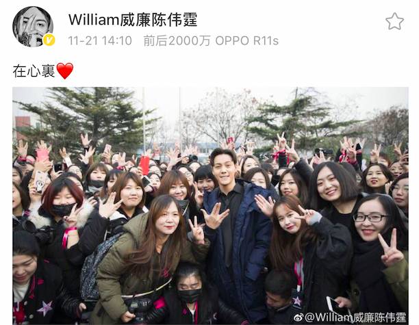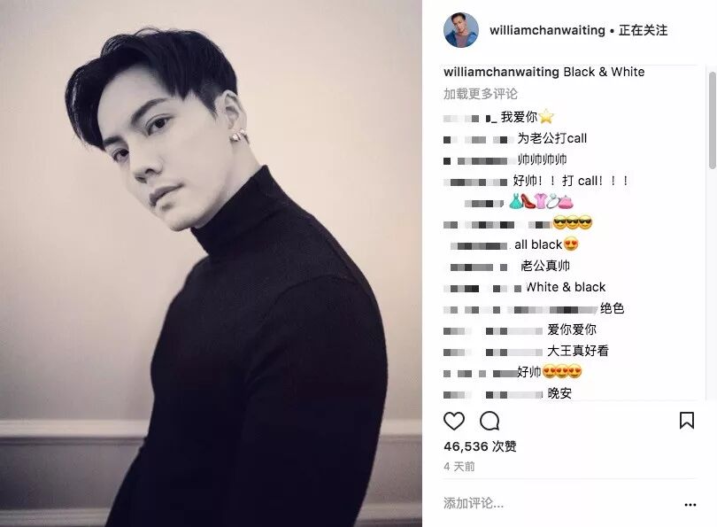 这样的评论对于陈伟霆来说并不少见,随手点开他的社交网络平台,都能看到大批“老公”“爱你”这样的留言。