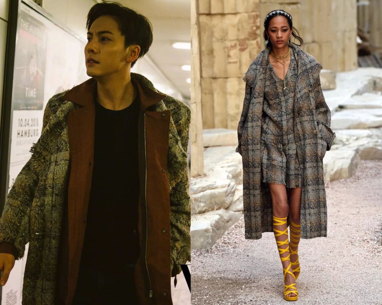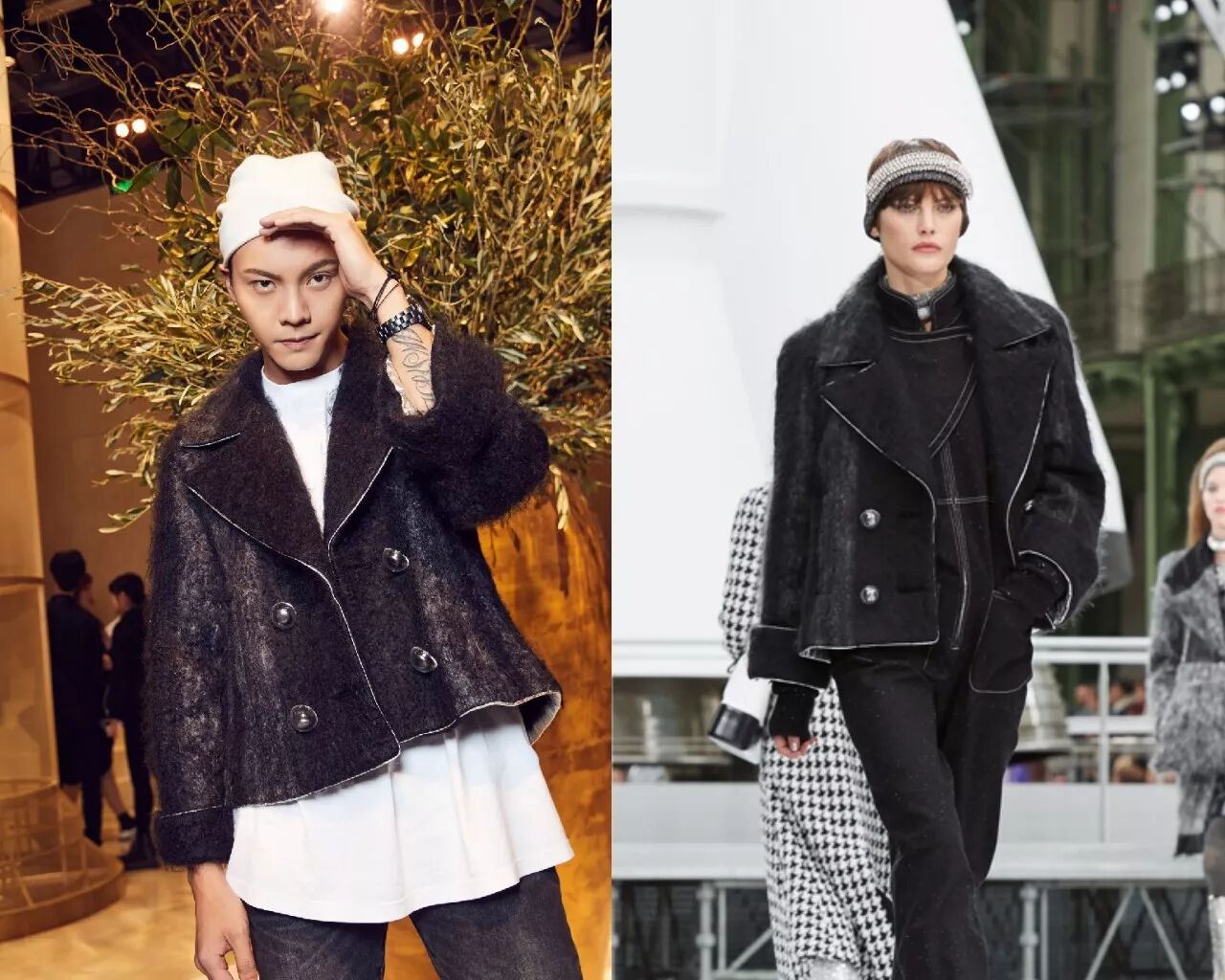 还有上个月初他在成都趁着酒兴热舞那天,穿的也是CHANEL 2017秋冬女装系列,不过选择了一身马海毛软呢外套,在天气逐渐变凉的深秋里,带来几分视觉上的温暖,内搭的白色长Tee,刚好均衡了因为女款太短而造成的视觉误差。