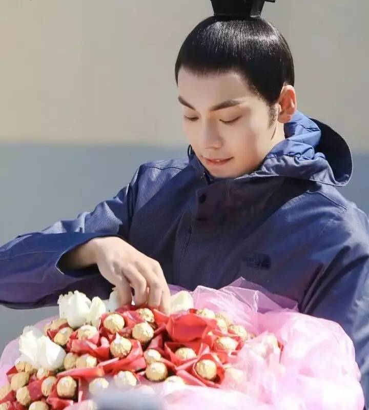 就连情人节也和粉丝在一起——那时候他还在拍戏,粉丝们去探班,他就站在门口挨着给她们发巧克力和玫瑰花。