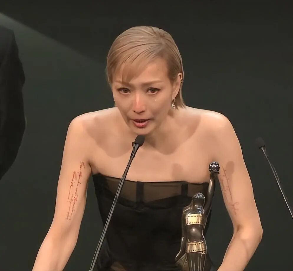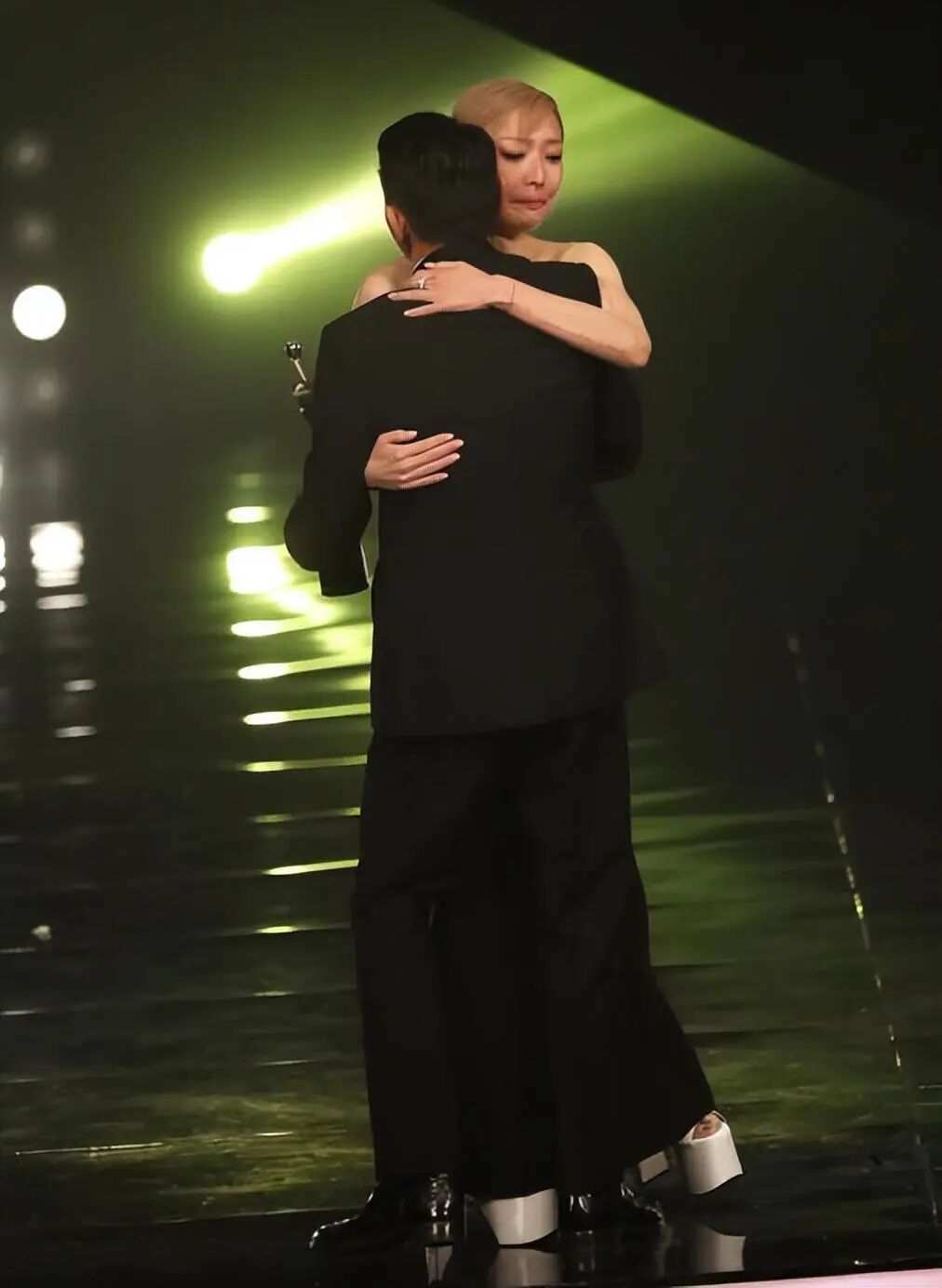她一上台就拥抱华仔,哭成了泪人,场面令人感动。
