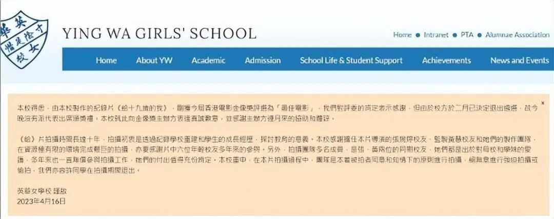 校方就此向金像奖主办方表达真诚歉意,并感谢主办方连月来的协助和体谅。