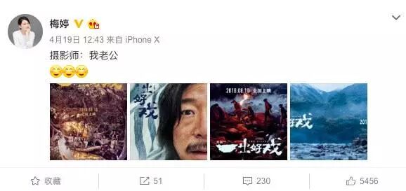 看到这样同台的照片之后,在翻看梅婷的微博才发现,原来《一出好戏》的海报是梅婷的老公拍摄的呀,难怪。