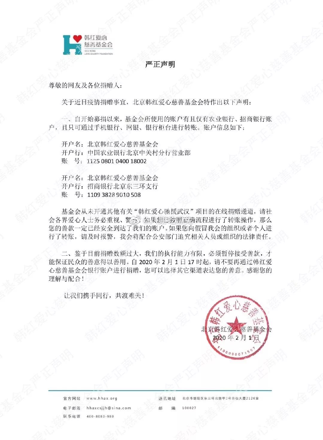 韩红爱心慈善基金会截止昨晚——