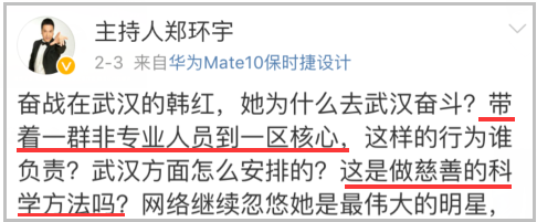 “韩红就是一个非专业人士,她带着一群非专业人员去疫区,这是做慈善的科学方法吗?”