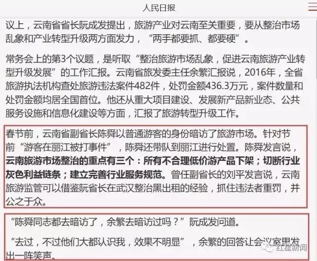 一段时间以来,媒体对云南旅游乱象多有报道,如导游要挟加钱、强制购物及游客被打等情形,网上也多有吐槽。都说“非躬耕不知稼穑艰”,官员微服私访或个人体验,确实有助于了解问题的严重程度,进而转化为刮骨疗毒的动力。但“私访”外,治理者亦可利用好各方面信息渠道,从舆情中了解民情反馈,从中感知当地旅游环境。