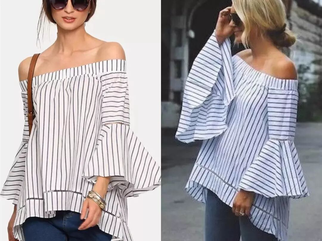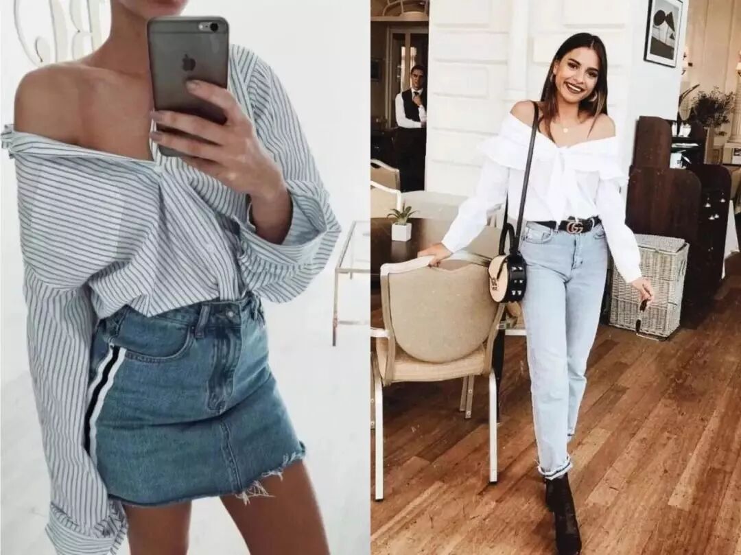 一字肩长袖衬衫把瘦的地方都露出来了,胖的地方都藏起来了,那还不是谁穿谁瘦。