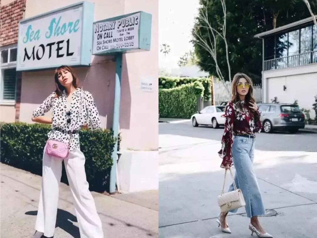 印花衬衫就更加温柔有气质了,用一条牛仔阔腿裤中和一下娘气,有味道又很成熟大气。