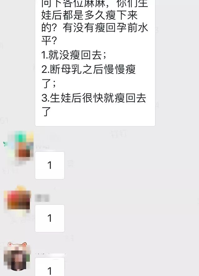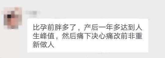 我们还做了个调研,群里80%的妈妈表示,生娃之后,根本就没瘦回去,最常见的就是肚子变大和胸背变厚。