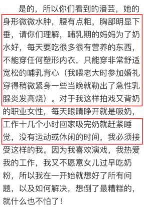 就连张歆艺自己在发泄完过后,都要给自己找补一句:没能马上恢复身材,让大家失望了,等我断了奶,我一定尽快瘦回来。