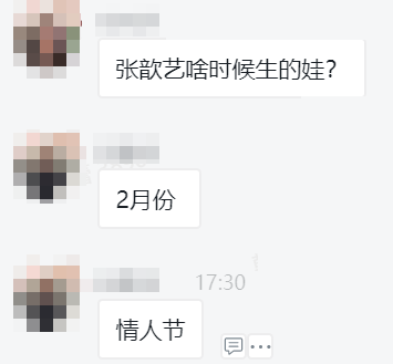 这组图片刚出来的时候,我们也有同事看到了。她当时还在群里问大家,张歆艺是啥时候生的娃?