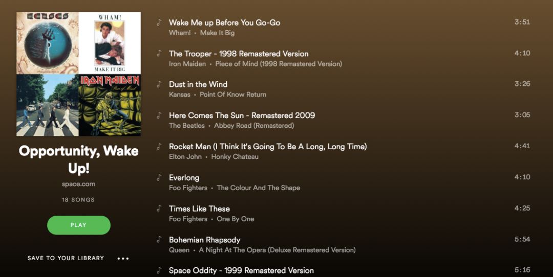 虽然两位工程师(George Michael and Andrew Ridgeley)的精神并未打动机遇号,但随后,NASA每天都会在Spotify上播放一首歌,以此希望早日收到机遇号回应。