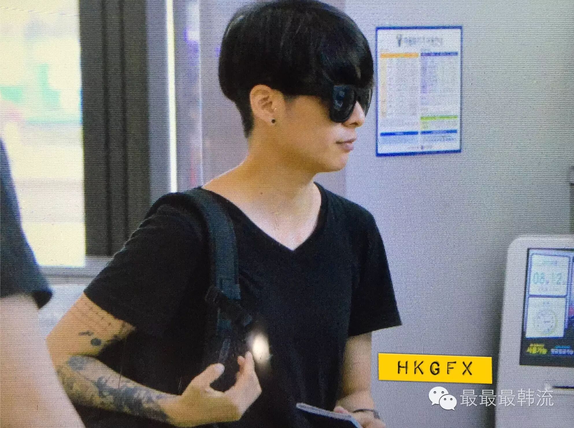 简单的黑色短发黑色短袖黑色墨镜,依然是Amber很日常的造型↓