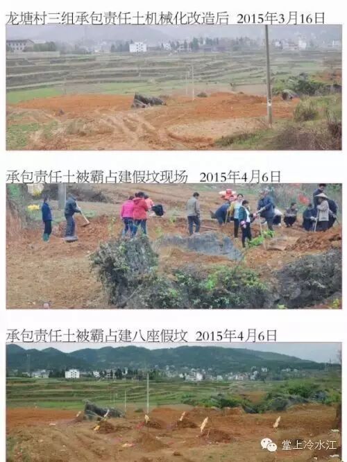 2015年新化油溪乡龙塘村民刘进新转包了村里抛荒多年的乱石山部分土地做为经济林种植。土地机械化改造完成后,龙塘村四组部分村民在刘进新的三组承包土地上强行修八座假坟.因此,农民刘进新向媒体求助,请求相关部门制止村民的不法行为.