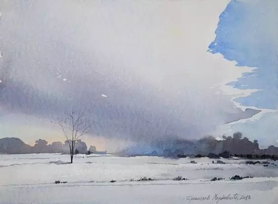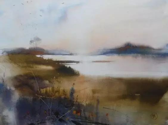 其实他的风景与花卉也画得也是相当不错,将简洁与意境结合得相当灵动。