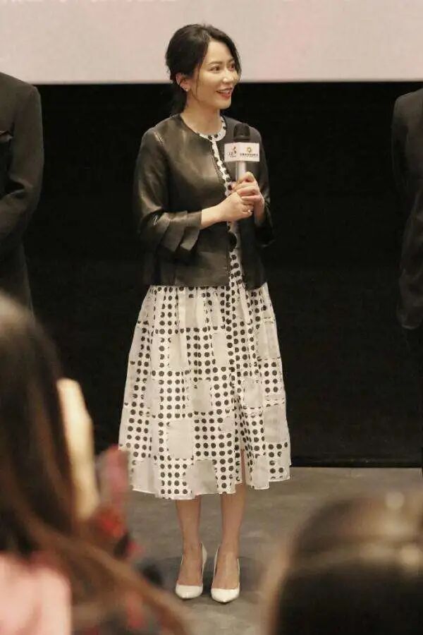 俞飞鸿很有气质,但不代表不会变老,所以看起来眼角的细纹还是很真实的。穿这样的红色西装,非常喜庆。她真的很漂亮,有一种别人根本无法模仿的气质。