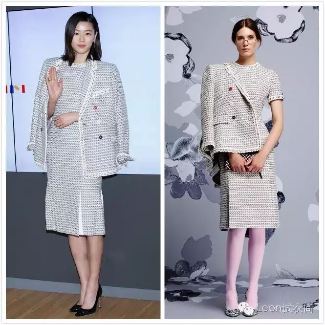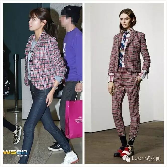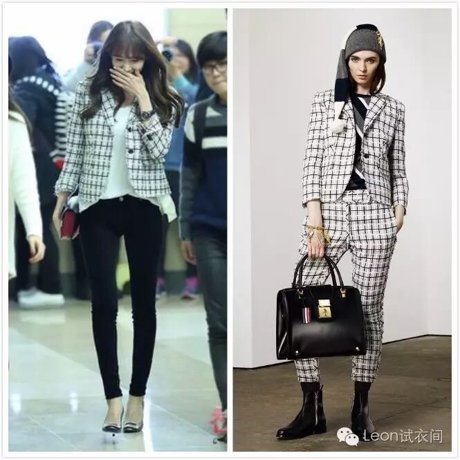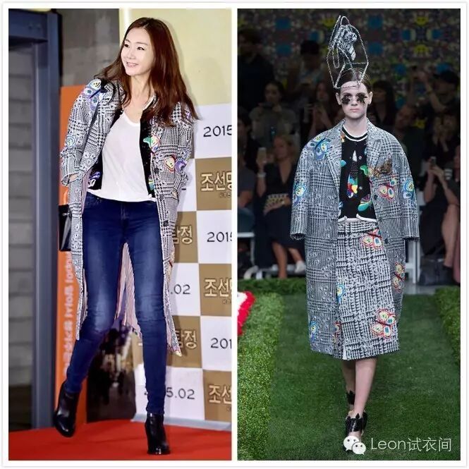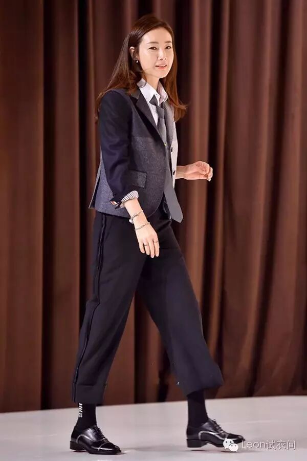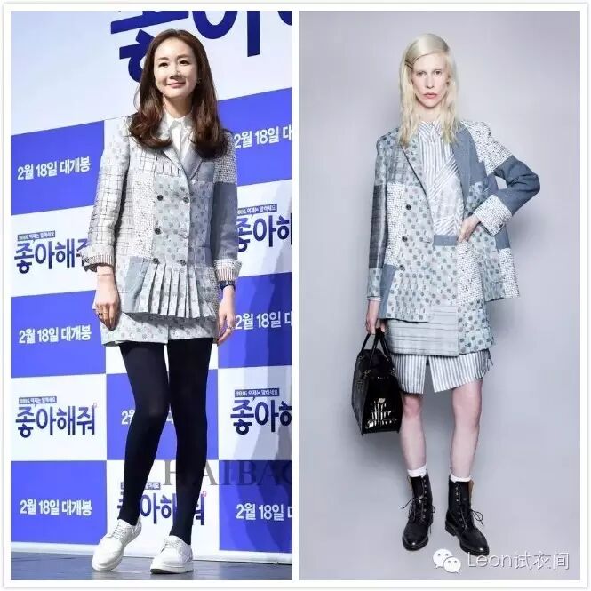 此外,街拍中电视剧中,也常看到韩星着thom browne女装出镜,无论奢华的皮草,还是干练西服,总能给人惊艳之感。