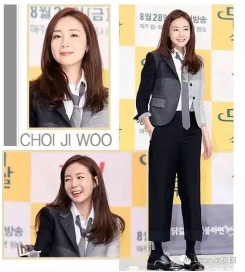 总说Thom Browne的“缩水”西装是小个子拉长身材比例的福音,但高个的崔智友穿起来效果也是相当不错,浓浓知性范儿。
