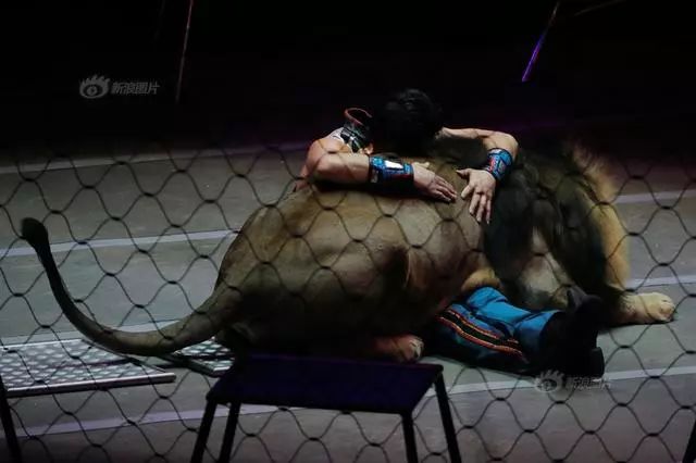 13/40 2017年5月21日,世界知名的美国“玲玲兄弟与巴拿姆贝理马戏团”在纽约长岛举行谢幕演出。这个有着146年历史的马戏团,即将走入历史。驯兽师Alexander Lacey在林林兄弟马戏团最后的表演期间,趴在狮子身上休息。Lucas Jackson/Reuters/Newscom