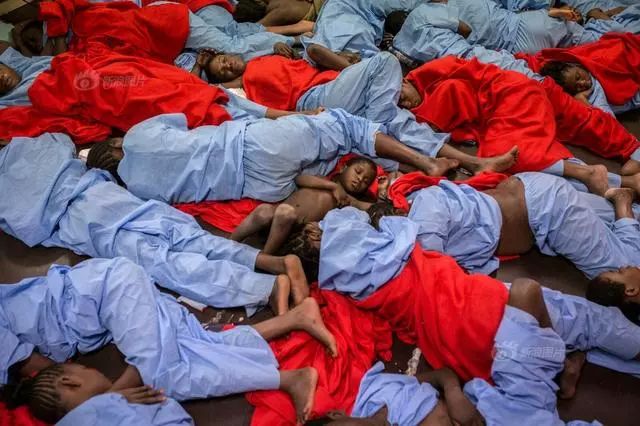 4/40 当地时间2017年1月13日,来自马里的孩子与其他难民在被从地中海救起后睡着了。据统计,2017年有上千难民在穿越地中海时死亡。Olmo Calvo/AP