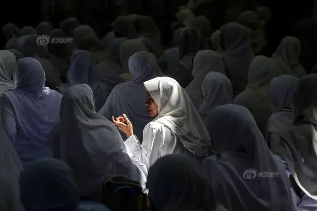 14/40 当地时间2017年6月11日,马来西亚吉隆坡,女子在清真寺古兰经诵读中交谈。此时正值斋月,穆斯林一年中最神圣的一个月。Ahmad Yusni / EPA
