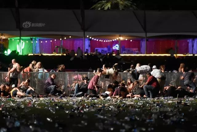 34/40 当地时间2017年10月1日,美国拉斯维加斯乡村音乐节上枪声响起之后,音乐会的观众们翻过栅栏,趴倒在地。 当晚,美国拉斯维加斯曼德勒湾酒店赌场一个场外的音乐节发生枪击事件。64岁的白人枪手史蒂芬·帕多克从对面曼德勒海湾宾馆的32层向楼下观看演唱会的观众开枪扫射,当时有多名乡村音乐歌手和约3万名观众在现场,事件导致59人死亡,527人受伤。David Becker/Getty Images