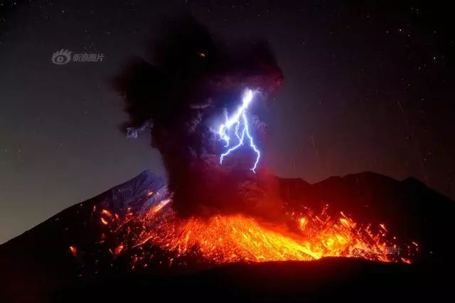 30/40 当地时间2017年9月29日,日本,喷发中的御岳火山电闪雷鸣,火山突然爆发导致55名登山者死亡,9人失踪。The Asahi Shimbun/Getty Images