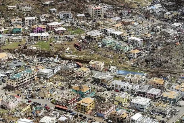 29/40 当地时间2017年9月13日, 一张航拍照片显示遭飓风袭击后的英属维尔京群岛首府罗德城。L(Phot) Joel Rouse/EPA