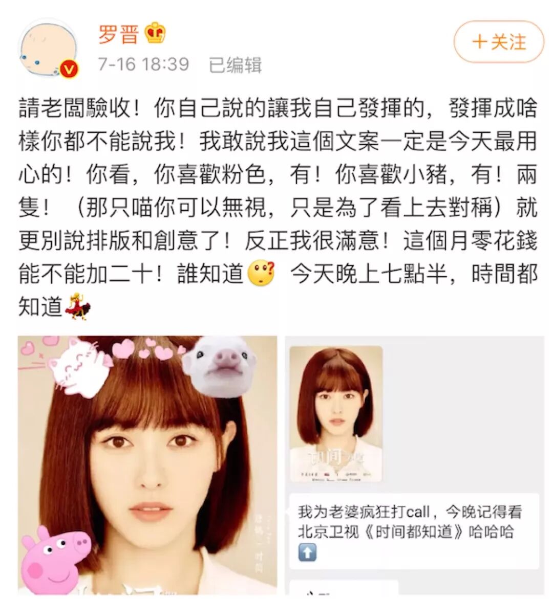 罗晋总在公众场合里说唐嫣是领导,是老板,是发零花钱的老婆,总之永远都是比自己更重要的那个人