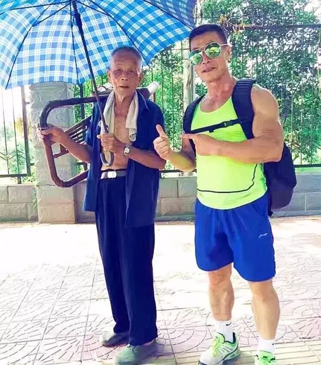 图右是67岁的健美运动员杨新民老师