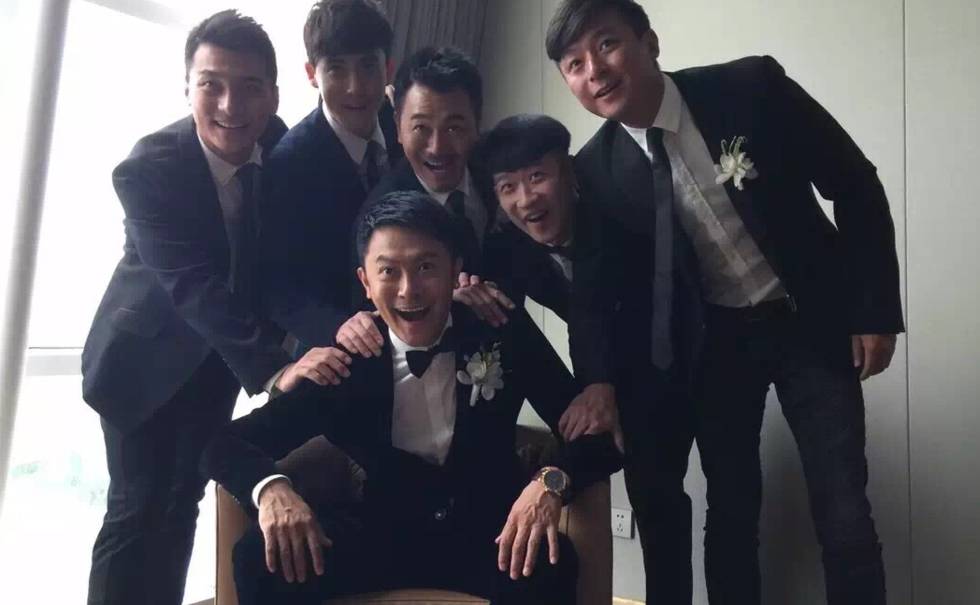 婚礼伴郎团由圈中相处多年的好兄弟朱雨辰、曹云金、贺刚、吴樾、张睿组成。另外,张国强、于娜、陶虹、涂松岩、郭晓冬、杨威等好友也纷纷出席。