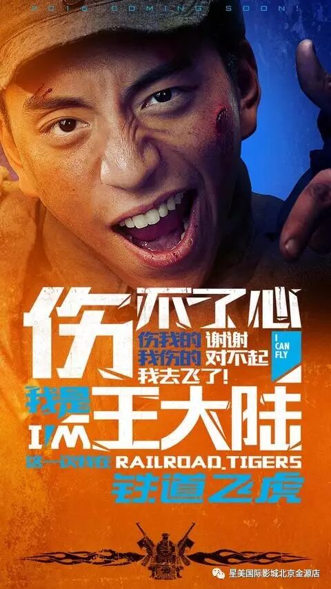 电影的关键元素火车露真容,飞虎队姿态各异地扒在飞驰的火车上浴火奋战,大片气质初显。