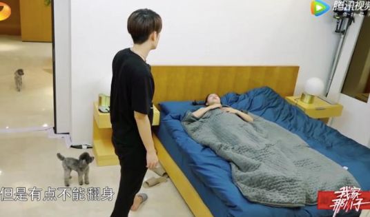 后来,他还带着这床重力被,来到了《快乐大本营》的现场,进行了“二次安利”。他声称:独居这10年来,除了家里的狗狗,给他最大安全感的就是这床“很重”的被子。