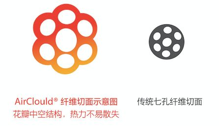 采用美国进口的 AirClould 空气云纤维,花瓣中空的结构,让热力不易散失,媲美鹅绒的保暖性。相比传统的纤维材料,提升了 75% 的保暖性,蓬松度增加 55%。不仅好用,还环保。