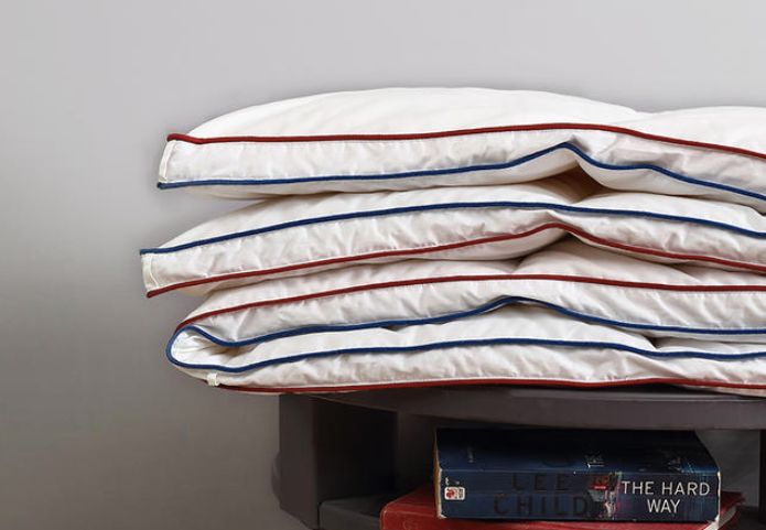 作为英国顶级四大床品之一的品牌,被子边缘双针滚边,高密封盒,细节处理的相当仔细。一蓝一红的颜色非常出挑,更显休闲感和不俗品味。