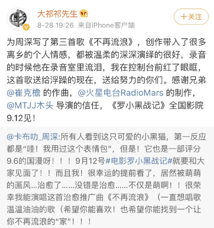 没错,从成名曲《大鱼》(电影《大鱼海棠》印象曲)开始,周深便热衷影视OST歌曲演唱。