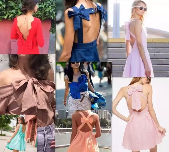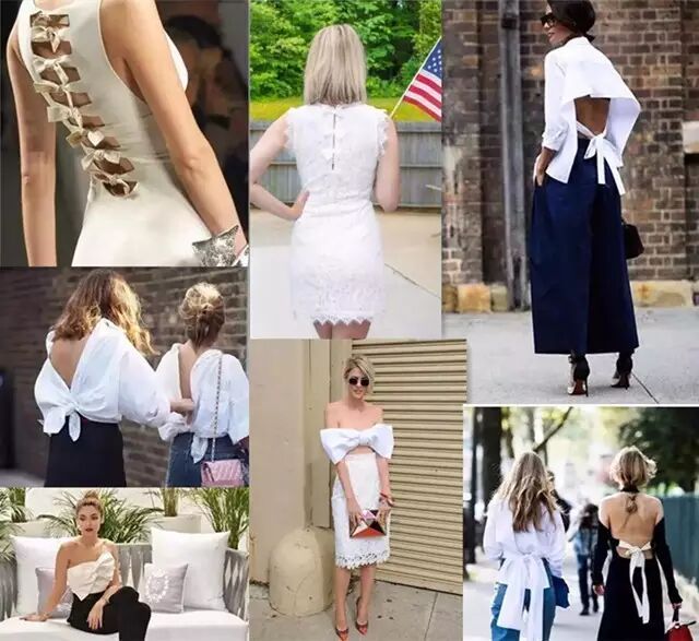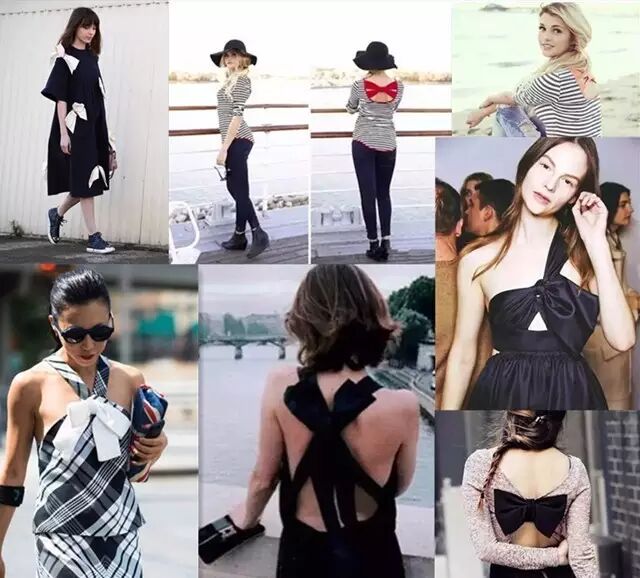 今年很多服装都在衣领、袖口、腰间,以蝴蝶结作为装饰,来增加服装的有趣、可爱感。背部,光滑的肌肤、漂亮分明的肌肉线条,再装饰上可爱的蝴蝶结,既性感又浪漫~~~