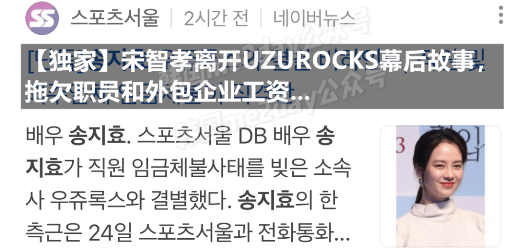 宋智孝怒了!突然宣布炒掉所属公司,离开前男友公司后事业持续走下坡? 韩国me2day 日韩女星 2023-04-25 17:02:23 333 创作不易,用心坚持,欢迎请BaGua喝几杯爱心咖啡!打赏并支持本文 打赏并删除本文 24日韩媒OSEN独家报道称,演员宋智孝于本月14日以所属公司UZUROCKS为对象通报解除专属合约。随后据体育首尔独家报道,宋智孝通报解除专属合约是因为UZUROCKS公司涉嫌拖欠职员及所属艺人工资,所以对其失去了信任。据悉最近UZUROCKS正在劝告部分公司在职人员辞职,其中一位离职者愤愤不平地向媒体爆料“110名员工中有40人被劝退或主动辞职,占三分之一左右,公司建议在能给退休金的时候辞职,而且还拖欠了工资,但代表没有向员工传达任何消息”。此外造型师等外包企业的费用也尚未结算。目前宋智孝的门户网站个人简历上已经变更为“无所属公司”,据悉现在宋智孝是在没有经纪人的情况下和造型师、部分熟人一起工作,她甚至还亲自开车去到拍摄现场。出生于1981年的宋智孝,从2001年拍摄KIKI封面杂志正式出道,之后转型为演员,凭借姣好的美貌和身材收获了众多粉丝。2010年她担任SBS周末综艺节目《Running Man》的固定MC后,直到现在都在国内外拥有着深厚的粉丝群体。而在宋智孝一帆风顺的20多年演艺生涯中,唯一的遗憾就是没有在一家好公司稳定下来。据韩媒报道从出道至今她一共签约过七家公司,简单来了解一下她这七次签约经历。1、最初宋智孝是在兼职的咖啡厅被一位女性经纪人看上,随后她父母才同意宋智孝做艺人,签约了一家小型经纪公司。2、出道几年后宋智孝在演艺界小有名气,于2005年5月离开最初的公司与Namooactors签订了专属合同。之后她出演的《宫》《朱蒙》《色即是空2》《霜花店》等作品接连收获了不错的反响,星途一片大好。3、不过2010年3月宋智孝转投到娱乐I.M旗下,同年4月宋智孝担任SBS综艺节目《深夜的TV演艺》的主持人,7月起担任SBS周末综艺节目《Running Man》的固定主持人,新公司确实给她带来了很好的综艺资源。4、然而一年后的2011年7月,宋智孝再次转投到C-JES娱乐公司。当时媒体报道宋智孝与C-JES娱乐公司代表白昌洙因为工作关系交流较多,两人关系愈发亲密,并于同年12月初时从公司同事发展为恋人关系。在C-JES娱乐公司期间,宋智孝主演过电视剧《急诊男女》电影《新世界》等作品,人气持续上升。不过2015年7月C-JES娱乐公司宣布与宋智孝四年的合同到期,还公开表示C-jes代表和宋智孝在2年前(2013年)就已经结束恋人关系。5、与C-JES娱乐公司合约结束后,时隔一年多的2016年12月宋智孝才与新创立的经纪公司My Company签订专属合同。但这之后她除了固定综艺《Running Man》外,其他并没有特别突出的作品。6、2019年9月宋智孝与My Company的合同结束两周后,2019年10月她与名为CREATIVE GROUP ing的新生企划公司签订了专属合同,双方进行了长达三年的合作。不过这期间宋智孝因为造型、短发争议一直风波不断,粉丝和大众连连呼吁她换新公司。(点击图片可插看原文)7、2022年10月宋智孝与CREATIVE GROUP ing合约到期后,同月19日就与UZUROCKS签订了专属合同。因为这是《Running Man》成员池石镇所属的公司,起初大家都为宋智孝的新出发感到高兴,而且从今年来宋智孝的活动照也能看出她的状态非常好。此前宋智孝和演员金秀贤还一起被委任为2023年国税厅宣传大使。(点击图片可插看原文)左右滑动可查看更多然而近期UZUROCKS公司却被曝出拖欠工资事件,对此公司代表回应:“已经给离职的员工支付了工资、四大保险金等,在职人员也将全部支付工资,对所属艺人的结算也将在预定时间内顺利进行”。对于宋智孝解除专属合约的通报,UZUROCKS代表最初表示不会和宋智孝解除合同。不过之后公司又发表声明称这是在运营多种事业领域时由于急剧扩张而出现的失误,目前与宋智孝就解除专属合约达成了协议,并对艺人们表示了歉意。当网友们得知宋智孝因UZUROCKS公司涉嫌拖欠职员及所属艺人工资通报解约后,大家第一时间都非常惊讶,也对她加入新公司半年就发生这样的情况感到惋惜... 创作不易,用心坚持,欢迎请BaGua喝几杯爱心咖啡!打赏并支持本文 打赏并删除本文 感谢您的支持鼓励,我会继续努力的!文章地址:用户邮箱:打赏金额:USDT 请输入数字点击”去打赏“,即可进行打赏支持本文章哦 宋智孝 发表评论