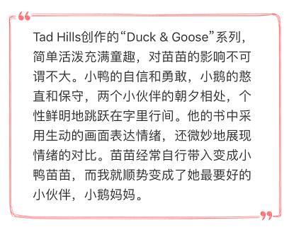 小鸭苗苗于是安静下来,和我一起回忆书中的画面。你一言,我一语,一同耐心地等待,一同期盼等待的果实,在终于轮到我们时击掌欢呼。