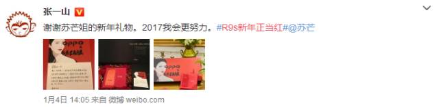 新年伊始,多位明星已经在第一时间收到了这款炫酷亮丽的新年“红”礼!张一山、古力娜扎、毛晓彤、戚薇、韩东君都在晒图中表达了对新年红礼的喜爱。OPPO R9s红色版还未上市就已经成为时尚爆点,受到时尚人士热爱、追捧。