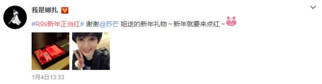 微博配图来看,这款OPPO携手时尚女王苏芒联合打造的R9s“新年正当红”礼盒以永久流行的经典之红为灵感,定义了时尚的型格tone调。这与OPPO R9s红色版采用的“红配黑”很搭配,OPPO R9s红色版黑色屏幕静默、深邃,红色外观则热情、高能,再加上时尚礼盒的衬托更让OPPO R9s红色版有了无法抵挡的诱惑力。
