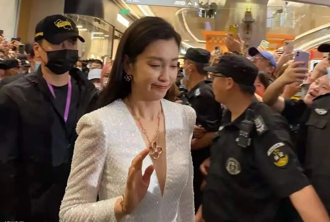 李冰冰穿低领装现身商场,从照片中的情况来看,李冰冰的人气确实挺高的,现场真的是人山人海,多名保安站成了两行,为李冰冰开道,李冰冰伸出一只手对观众打招呼,她脸上的表情有点复杂,看起来让人有点心疼。