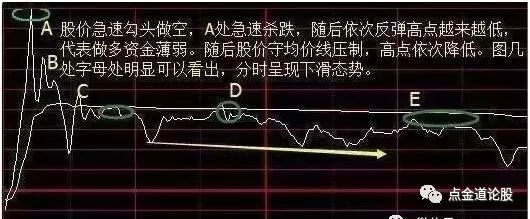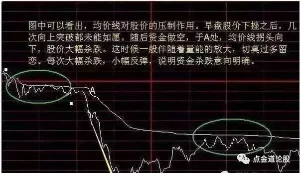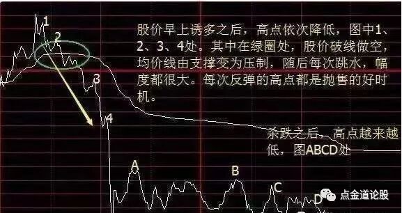 2、压力卖出法:实时价格线在均价线下方附近多次受到阻力