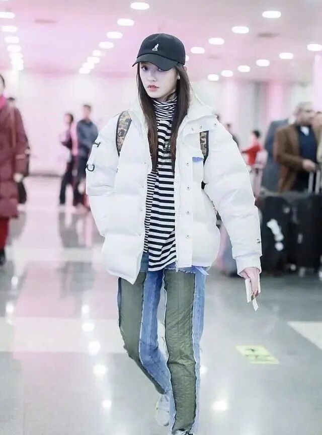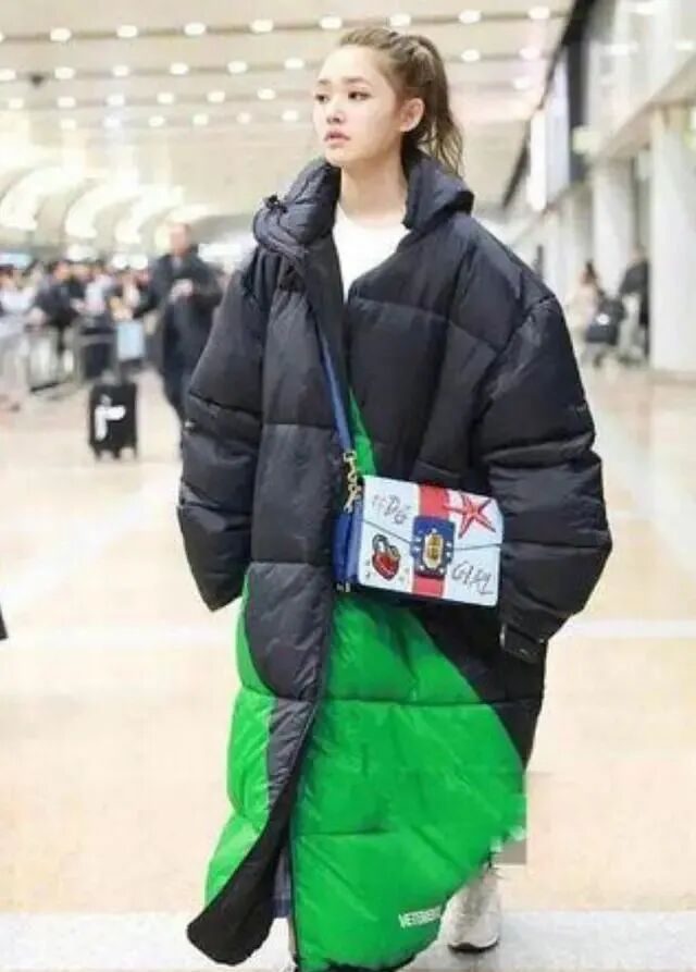 往往在驾驭服装单品的时候,想要轻松地将其优势展现出来,就要从服装本身出发,就像林允选择的这款超大羽绒棉服,采用了斜向的拼接手法,整体的纵向延伸感很强,所以能够瞬间达到提升比例感的效果,就算是选择了及脚踝长度的款式,也没有特别拖沓的感觉。