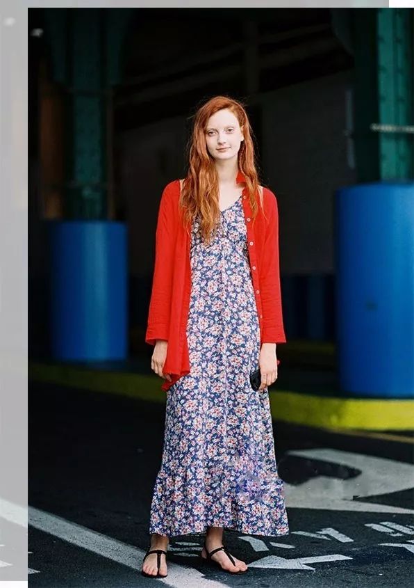 但是因为内搭的印花裙本身就是元素繁复的单品,开衫一定要够素雅才能凸显气质,千万别穿成“花蝴蝶”让人眼花缭乱咯~