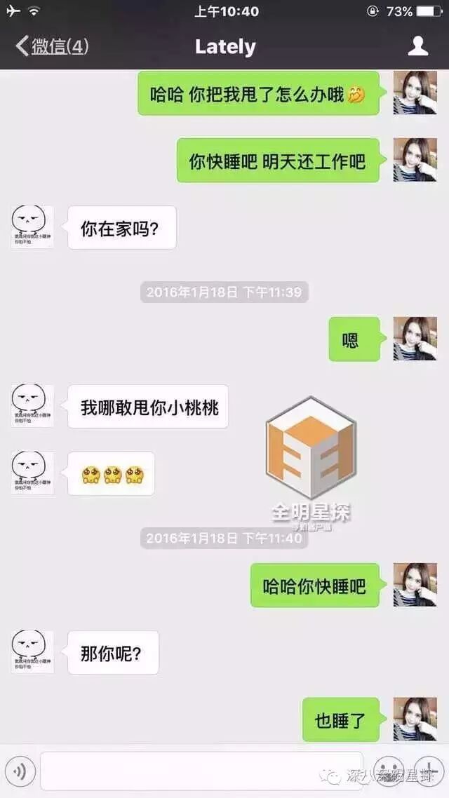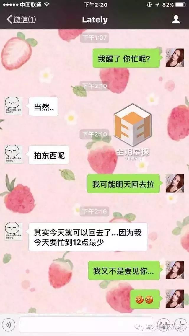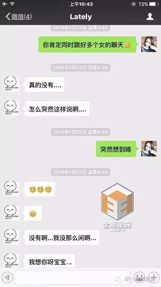 这个阶段小G娜开始有查岗性质了,比如“你怎么又去台湾”“台湾待一天么”“你肯定同时跟好多个女的聊天”为了不让吴亦凡觉得自己很上心,还特地加了个偷笑的表情……