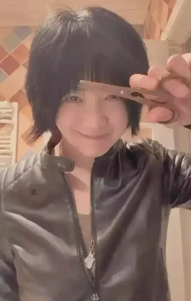 视频当中,斯琴格日乐穿着黑色的皮衣,看起来飒气十足,虽说没有化妆,但斯琴格日乐的状态还是不错的。在镜头前,她拿着剪刀,表情很神秘,之后在刘海前面划拉了几下子,又冲着镜头大笑起来。