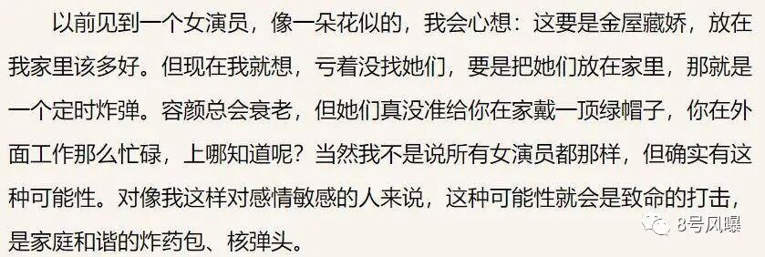 原因是女演员身份尴尬,身上有很多不确定因素,爱慕虚荣。