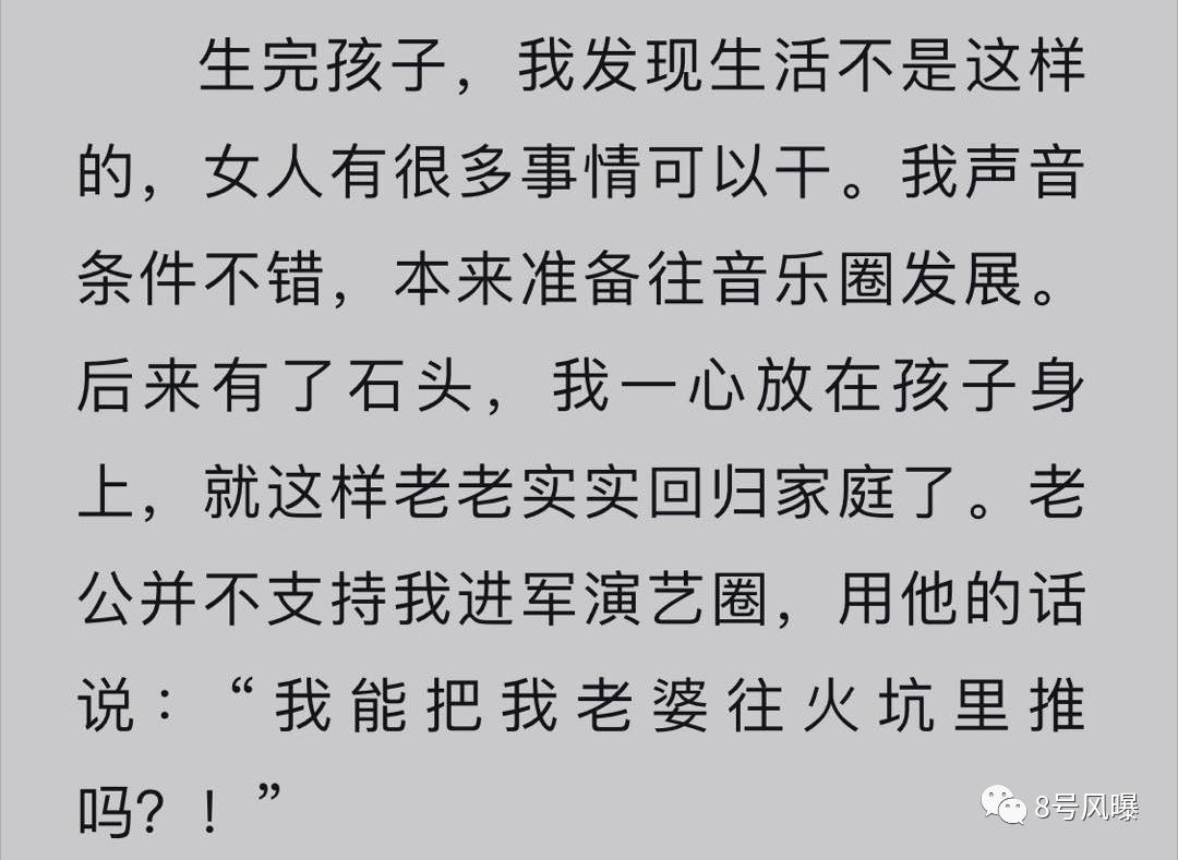 所以当她成为全职太太时,她称这是给郭涛解决了“后顾之忧”;